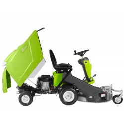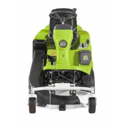 Cutting width is 800 mm, the cutting height varies from a minimum of 30 to a maximum of 90mm and adjustments are made by lever with seven positions which is located next to the driver’s seat. The cutting deck with collection can be converted into a mulching deck or with lateral discharge by utilising the optional kits. The cut grass is fed into the discharge chute which leads directly to the grass catcher with 200 L capacity.